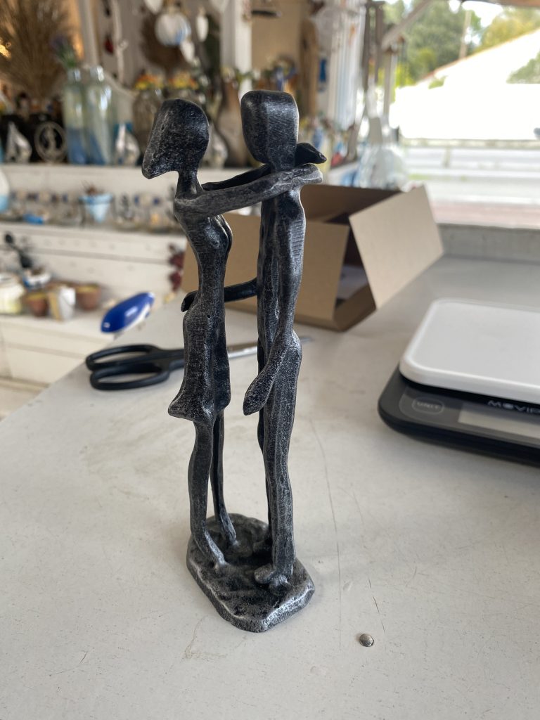 Jolie sculpture en fer forgé représentant une scène de couple.