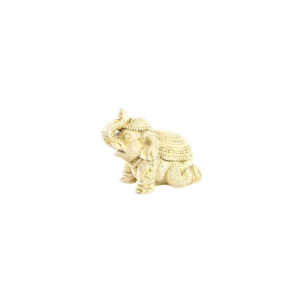 Cet éléphant hindou est une petite sculpture décorative en pierre reconstituée d’une hauteur de 20 cm. Symbole fort et vénéré dans la culture indienne, l’éléphant incarne la sagesse, la protection et la prospérité.