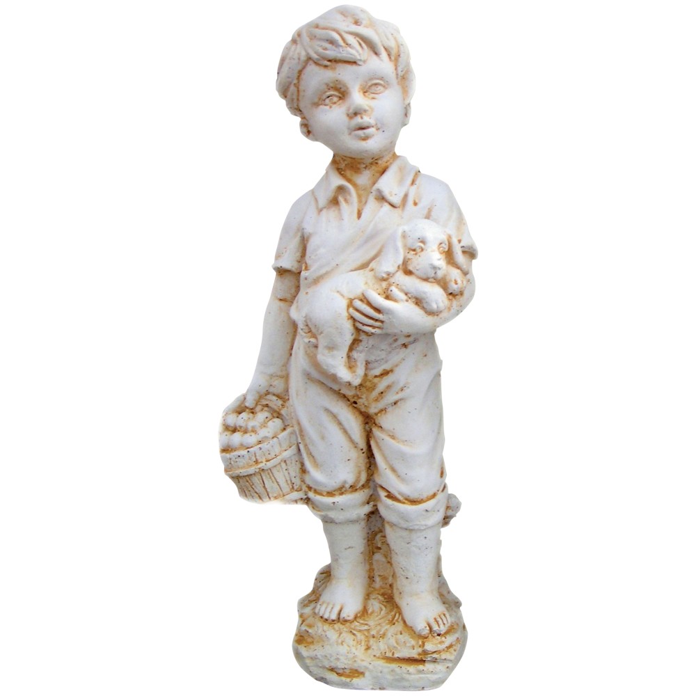 Statue Petit Garçon au Chien en Pierre Reconstituée